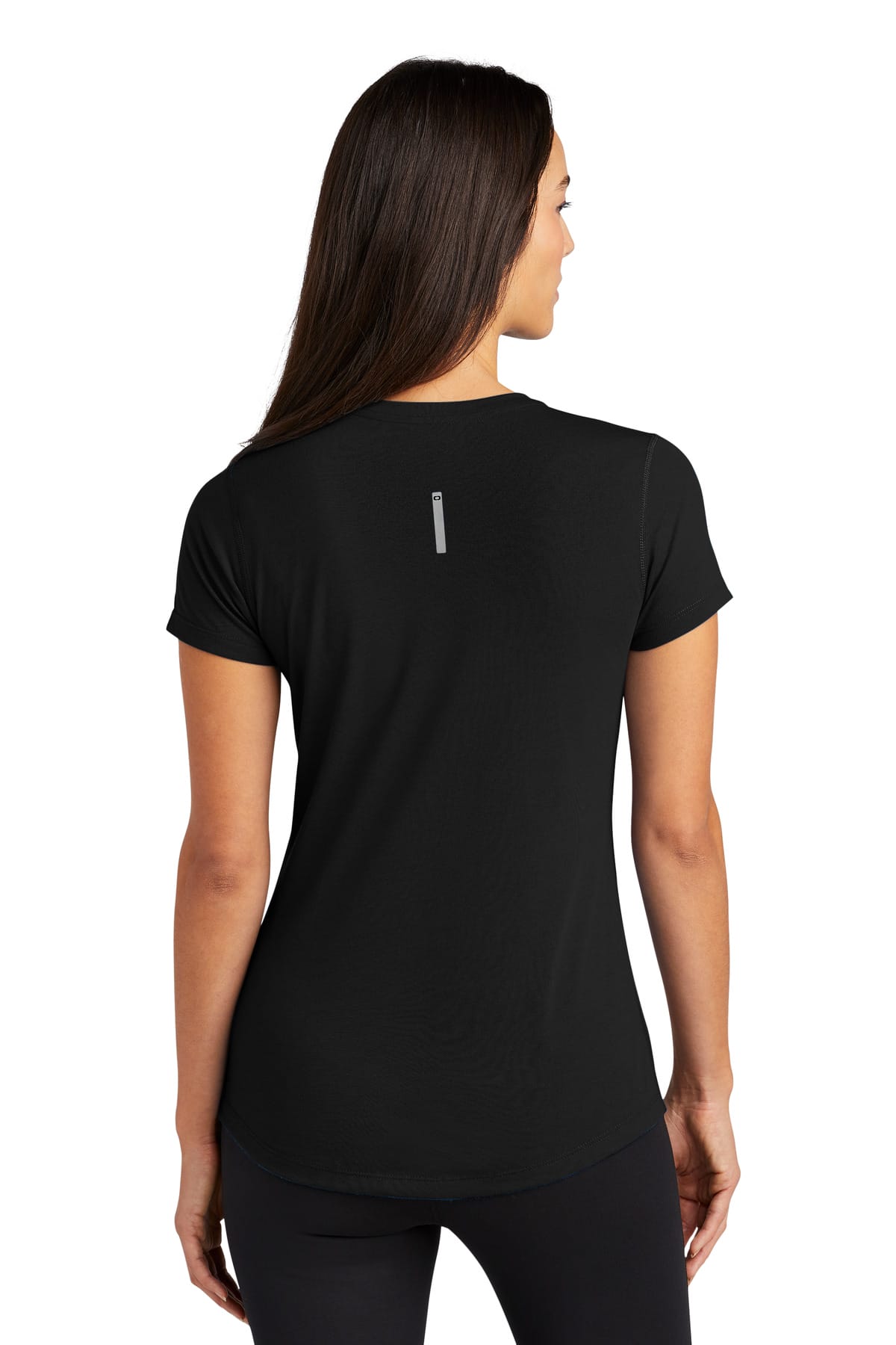STAY-COOL WICKING FLATLOCK SEAMS FOR COMFORT REFLECTIVE DETAILS 4.3-ounce, 80/20 poly/cotton jersey with stay-cool wicking technology OGIO heat transfer label for tag-free comfort Reflective taping under flatlock stitching at the shoulders Set-in sleeves Reflective OGIO vertical bar heat transfer on center back Reflective O heat transfer on front left hem
